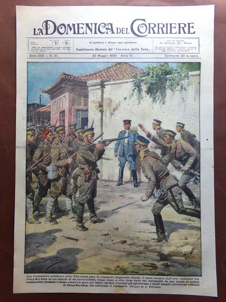 Copertina Domenica Corriere nr. 21 del 1928 Chiang Kai-shek Sasaki Cina Giappone