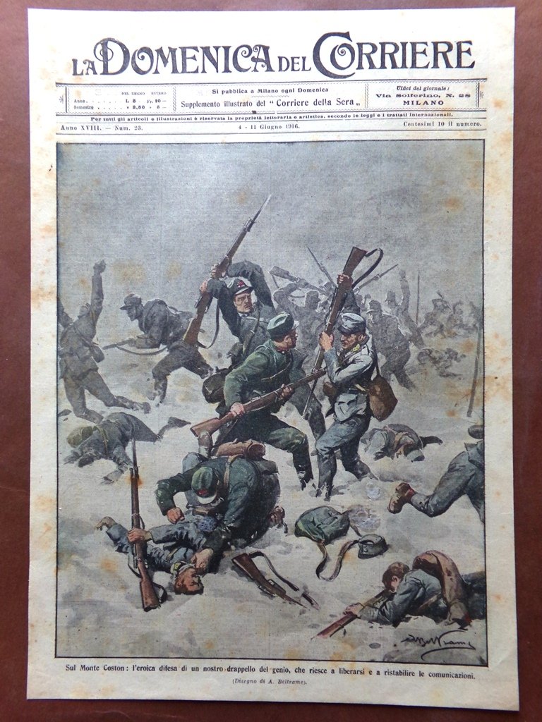 Copertina Domenica Corriere nr. 23 del 1916 WW1 Monte Coston Difesa del Genio