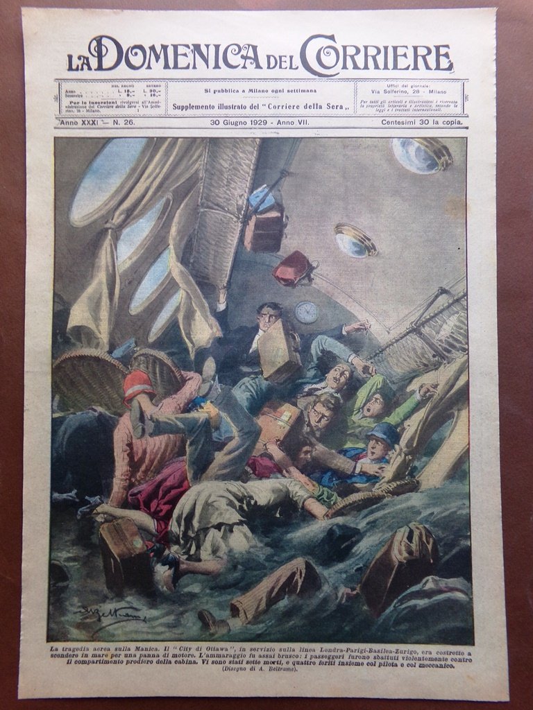 Copertina Domenica Corriere nr. 26 del 1929 City of Ottawa Tragedia Aerea Manica