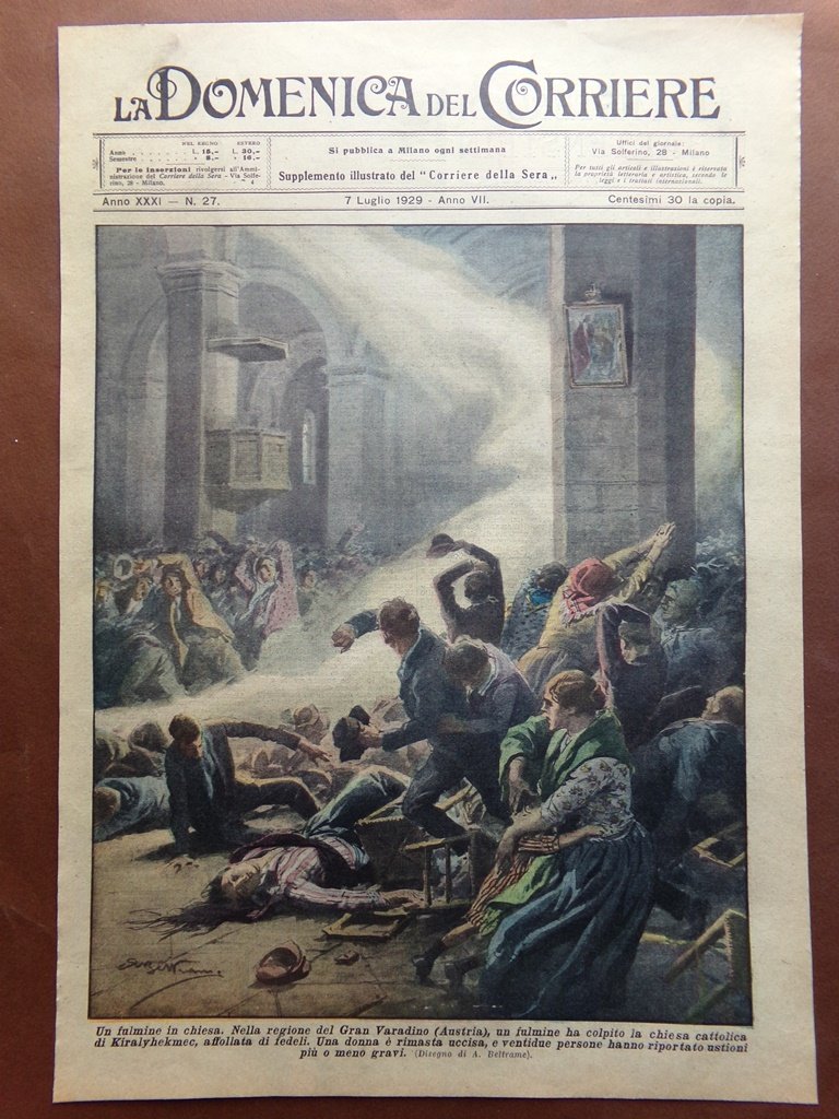 Copertina Domenica Corriere nr. 27 del 1929 Fulmine Gran Varadino Kiralyhekmec