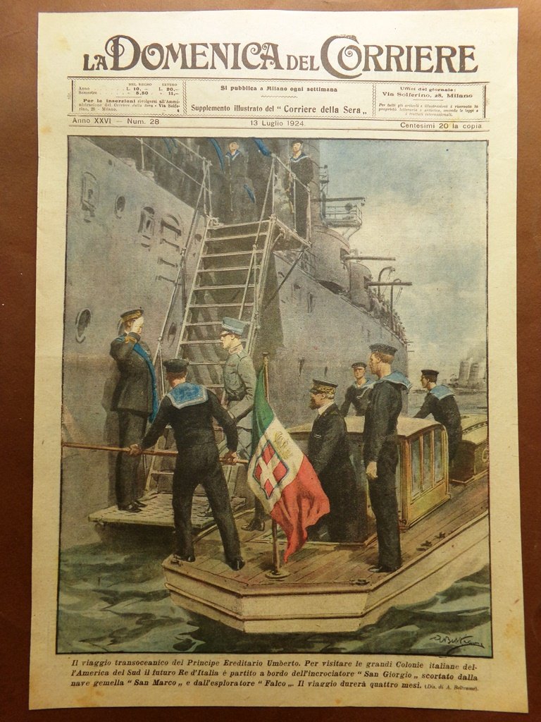 Copertina Domenica Corriere nr. 28 del 1924 Viaggio Principe Ereditario America