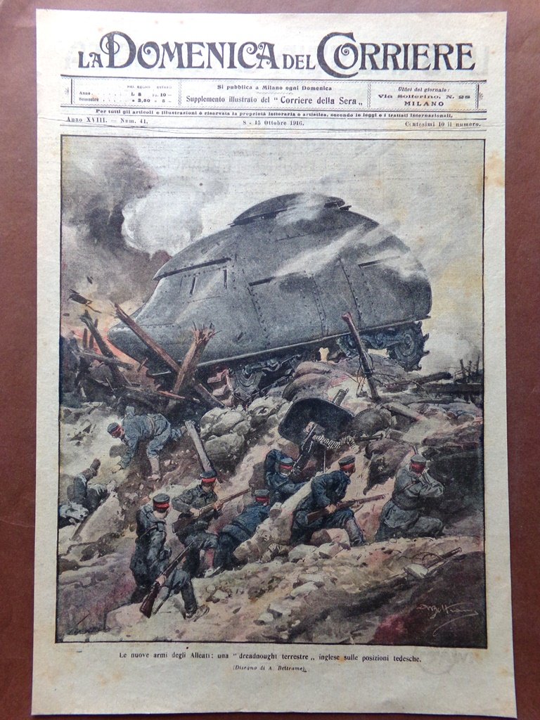 Copertina Domenica Corriere nr. 41 del 1916 WW1 Dreadnought Terrestre Inglese