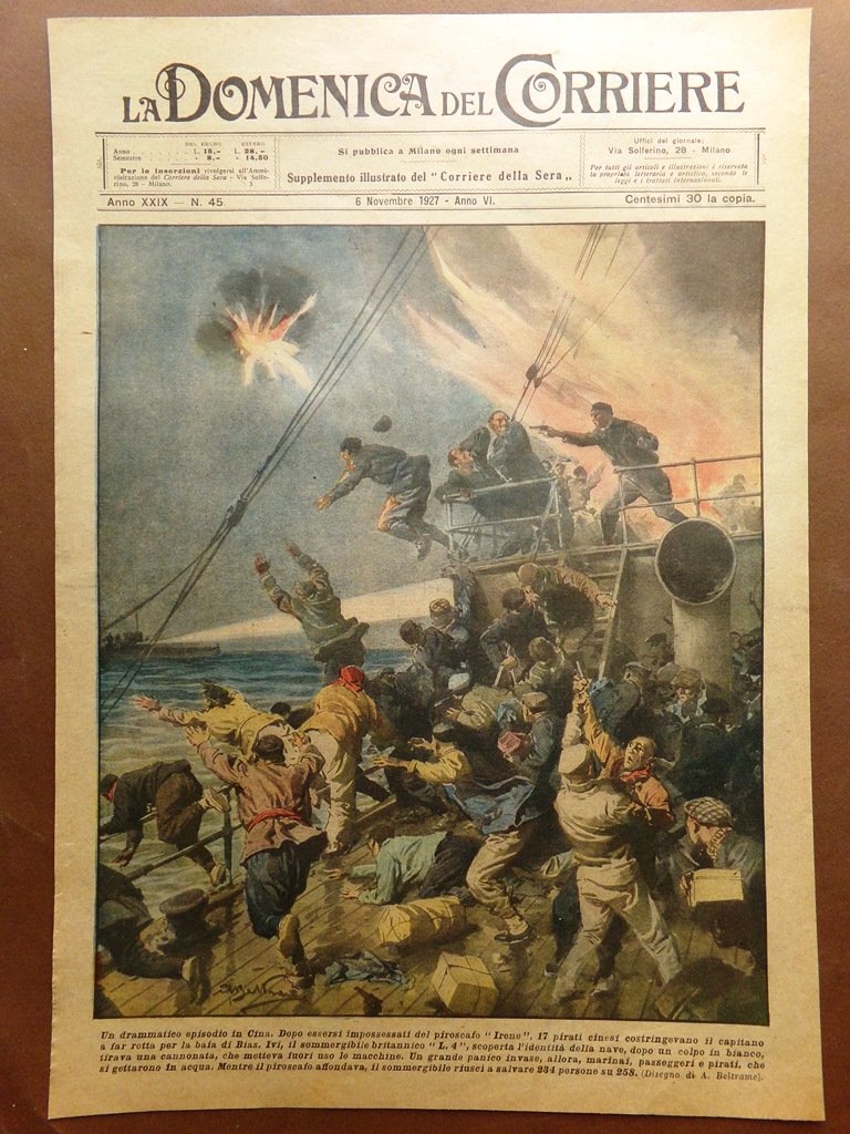 Copertina Domenica Corriere nr. 45 del 1927 Pirati Cinesi Irene Baia di Bias