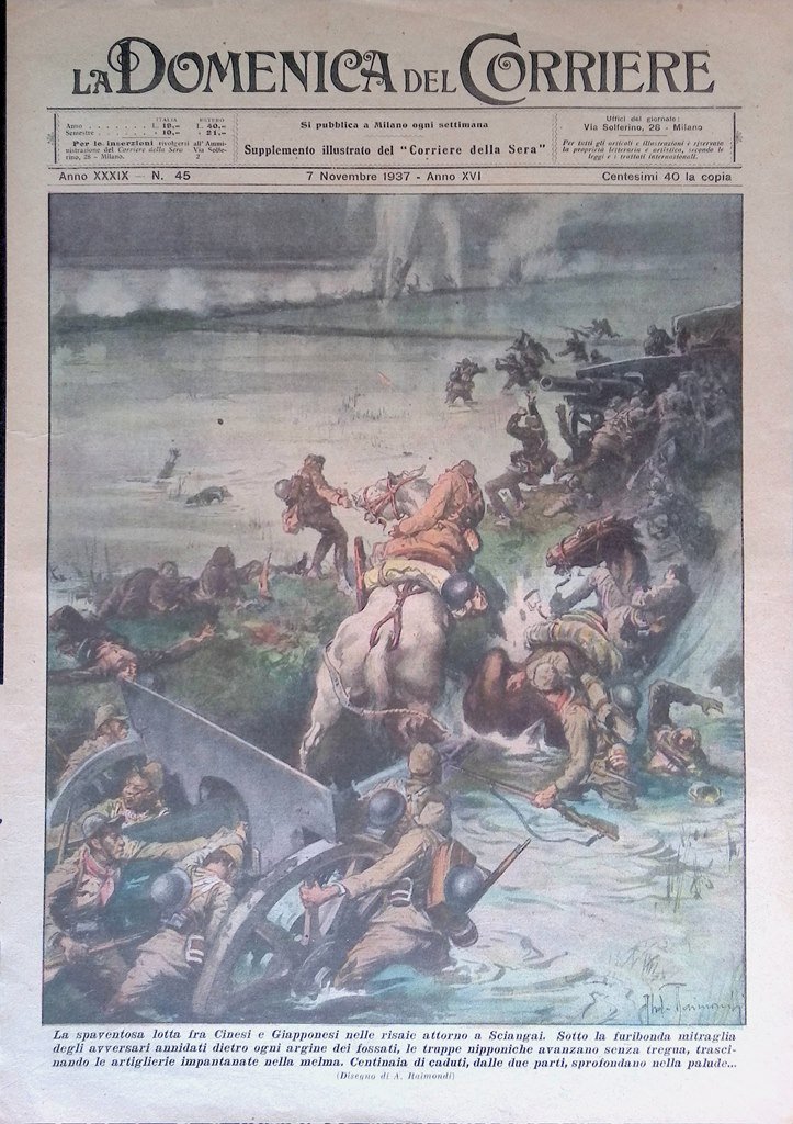 Copertina Domenica Corriere nr. 45 del 1937 Guerra Cina Giappone Paludi Shangai