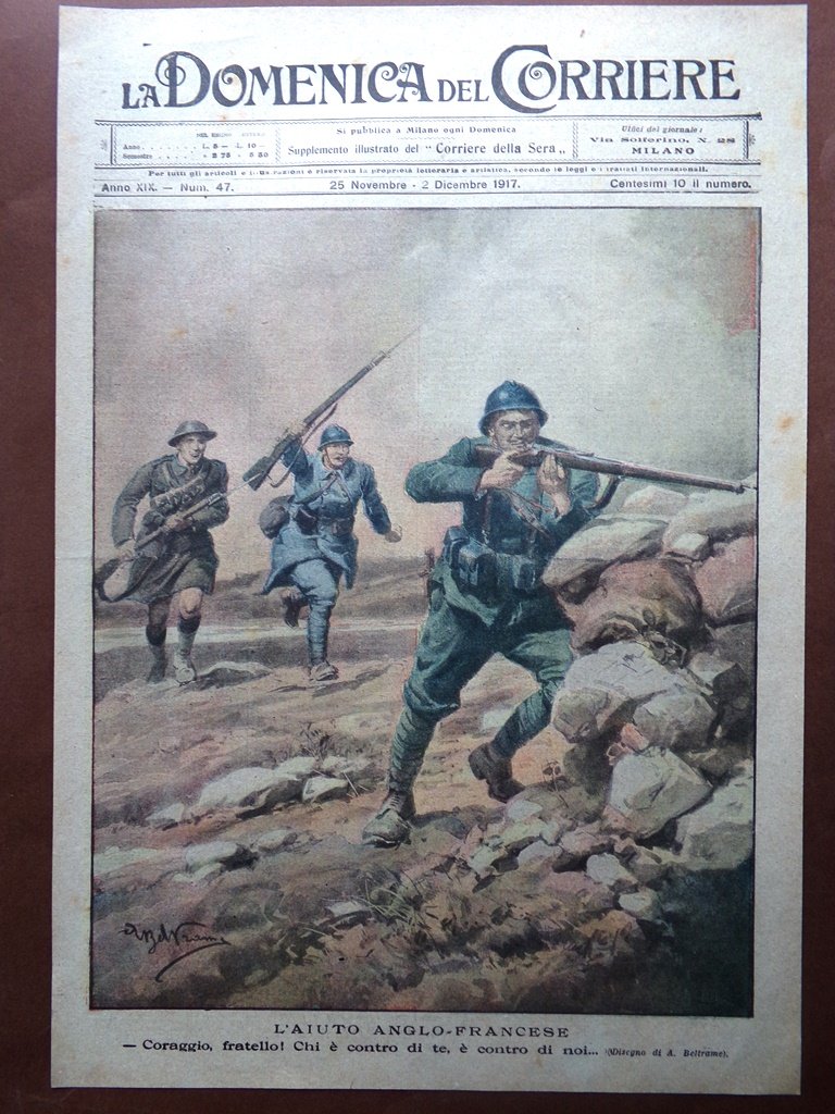 Copertina Domenica Corriere nr. 47 del 1917 WW1 Aiuto Inglesi e Francesi Guerra