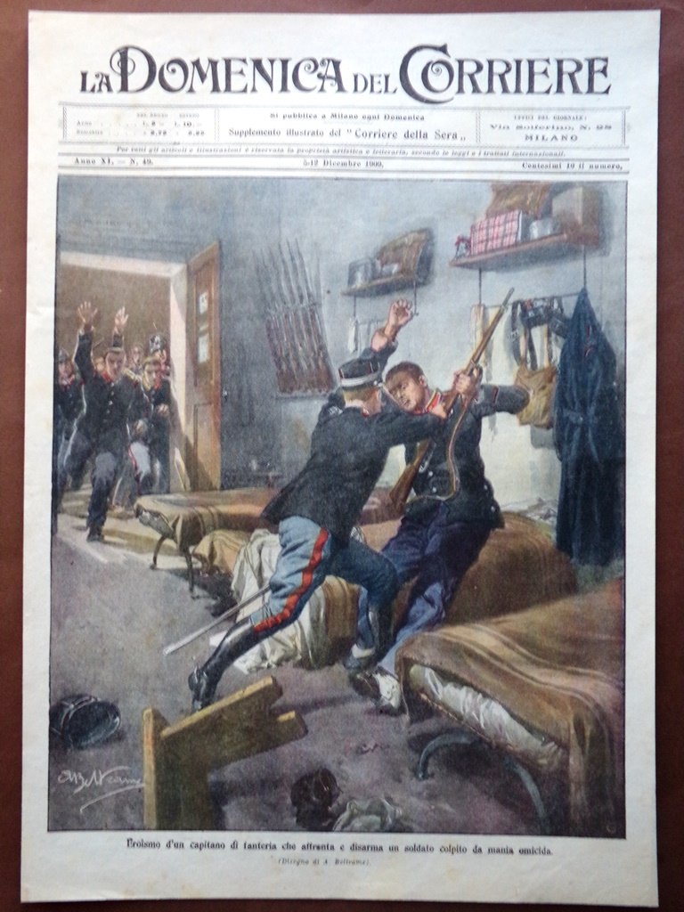 Copertina Domenica Corriere nr. 49 del 1909 Capitano Fanteria Disarma un Soldato
