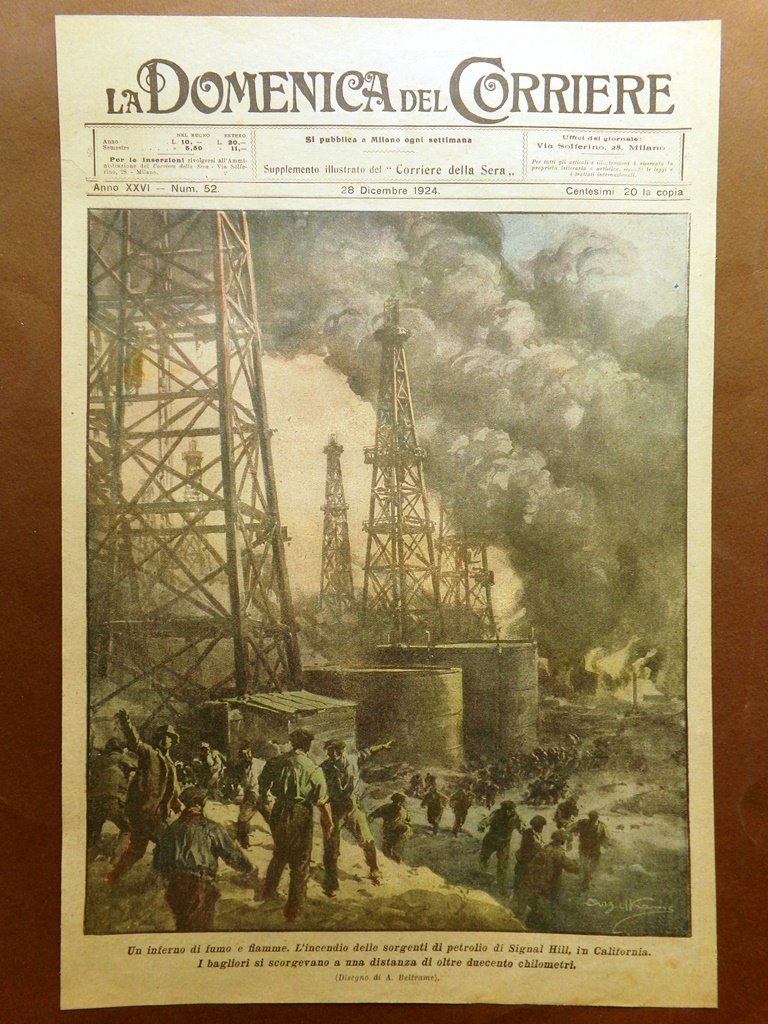 Copertina Domenica Corriere nr. 52 del 1924 Incendio Petrolio Signal Hill Fuoco