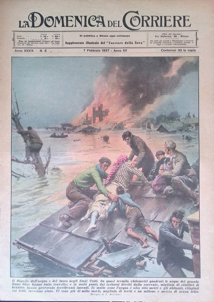 Copertina Domenica Corriere nr. 6 del 1937 Inondazione in Ohio Fiume Stati Uniti