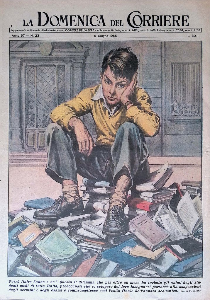 Copertina Domenica del Corriere nr. 23 del 1955 Sciopero Insegnanti Scuole Medie