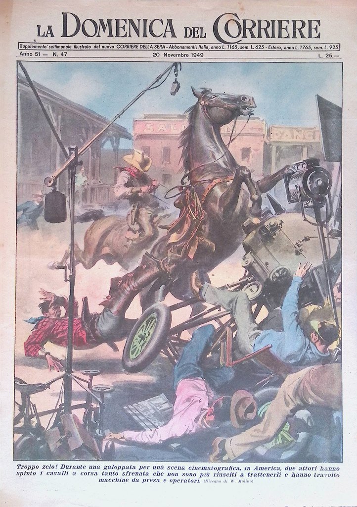 Copertina Domenica del Corriere nr. 47 del 1949 Cavalli Imbizzarriti nel Cinema