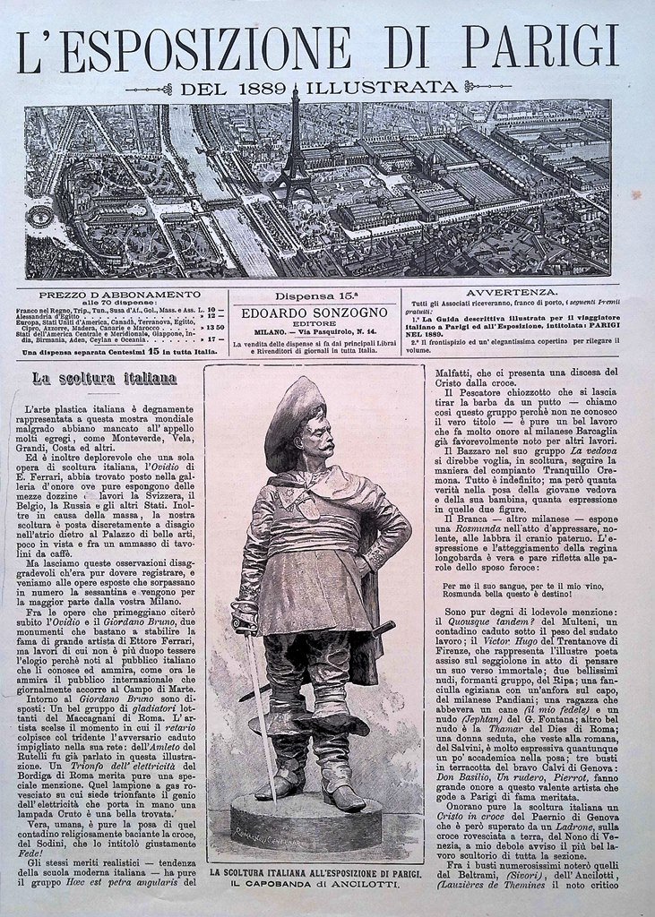 Copertina Esposizione di Parigi nr. 15 del 1889 Scultura Capobanda Ancilotti
