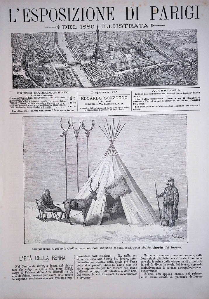 Copertina Esposizione di Parigi nr. 38 del 1889 Capanna Età della Renna Lavoro