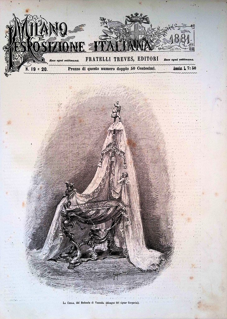 Copertina Milano Esposizione Italiana nr. 19 e 20 del 1881 Culla Bedendo Venezia