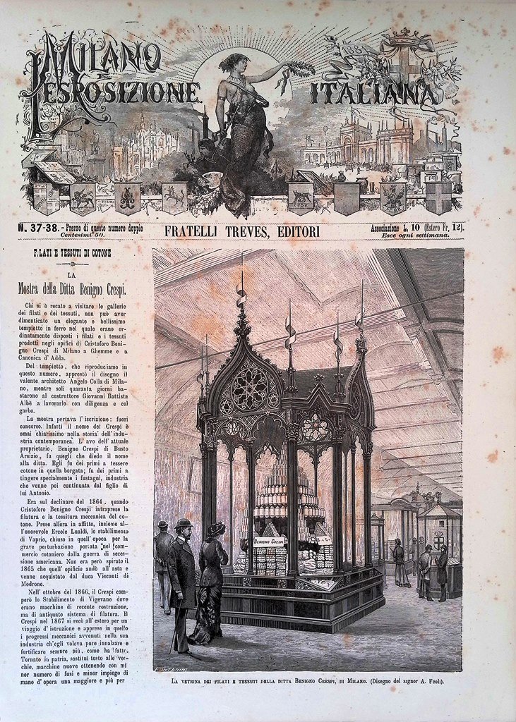 Copertina Milano Esposizione Italiana nr. 37 e 38 del 1881 Filati Benigno Crespi