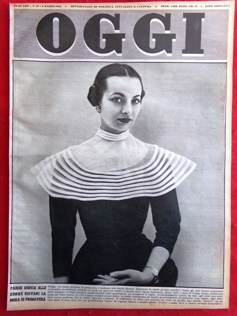 Copertina Oggi nr. 10 del 1952 Parigi dedica alle donne Giovani Moda Primavera