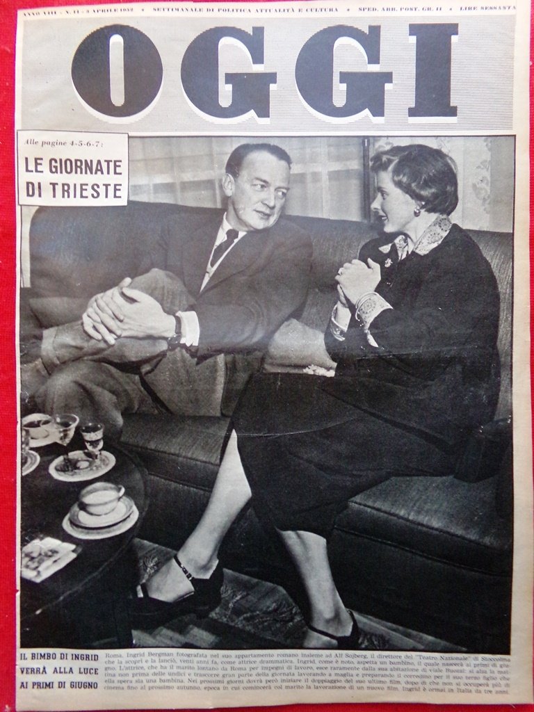 Copertina Oggi nr. 14 del 1952 Ingrid Bergman Sojberg Direttore Teatro Stoccolma