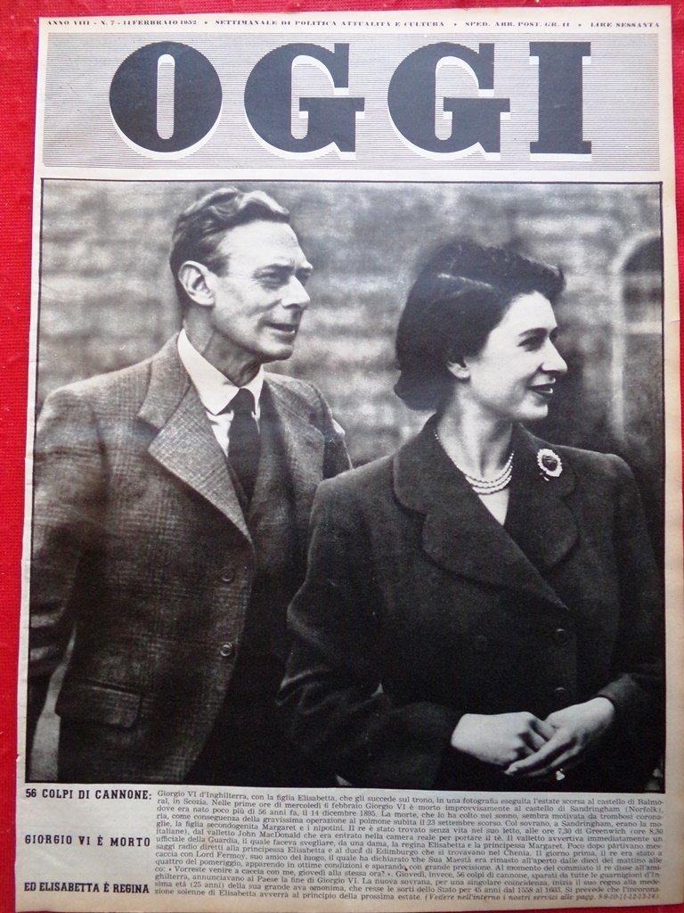 Copertina Oggi nr. 7 del 1952 Morte Giorgio VI Inghilterra Elisabetta II Regina