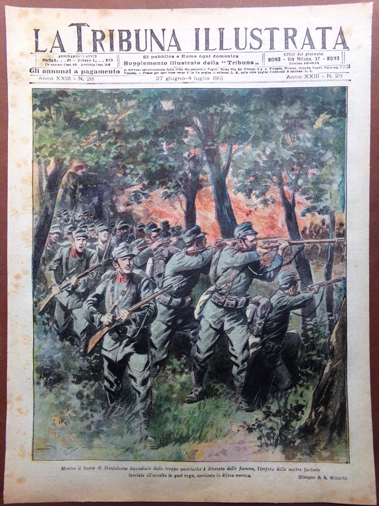 Copertina Tribuna Illustrata nr. 26 del 1915 WW1 Bosco di Monfalcone in Fiamme