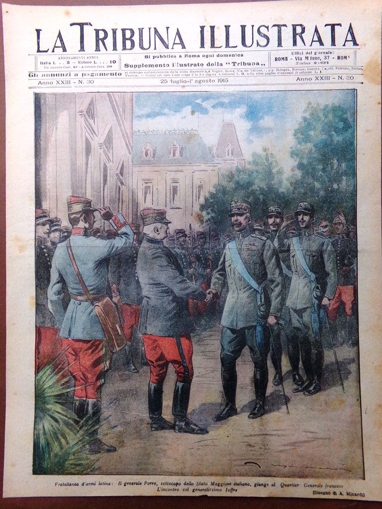Copertina Tribuna Illustrata nr. 30 del 1915 WW1 Generale Porro Incontro Joffre