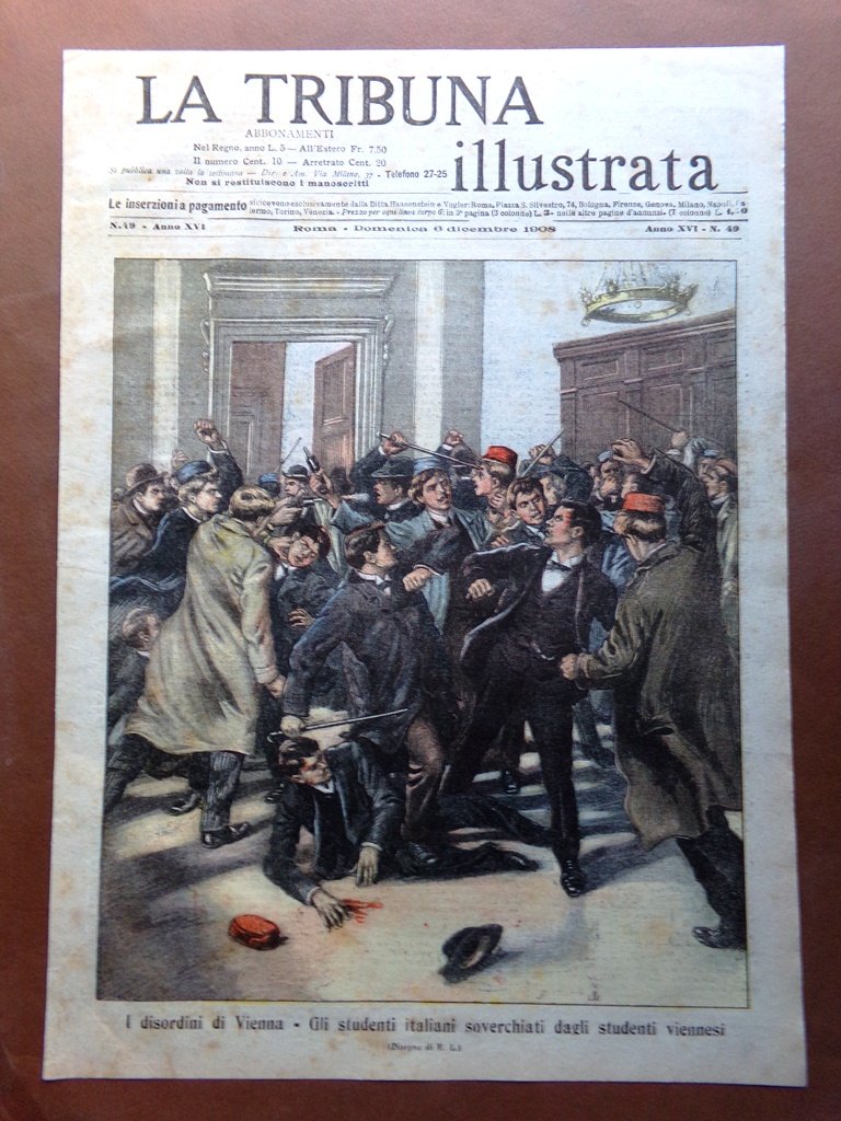 Copertina Tribuna Illustrata nr. 49 del 1908 Disordini Vienna Studenti Italiani