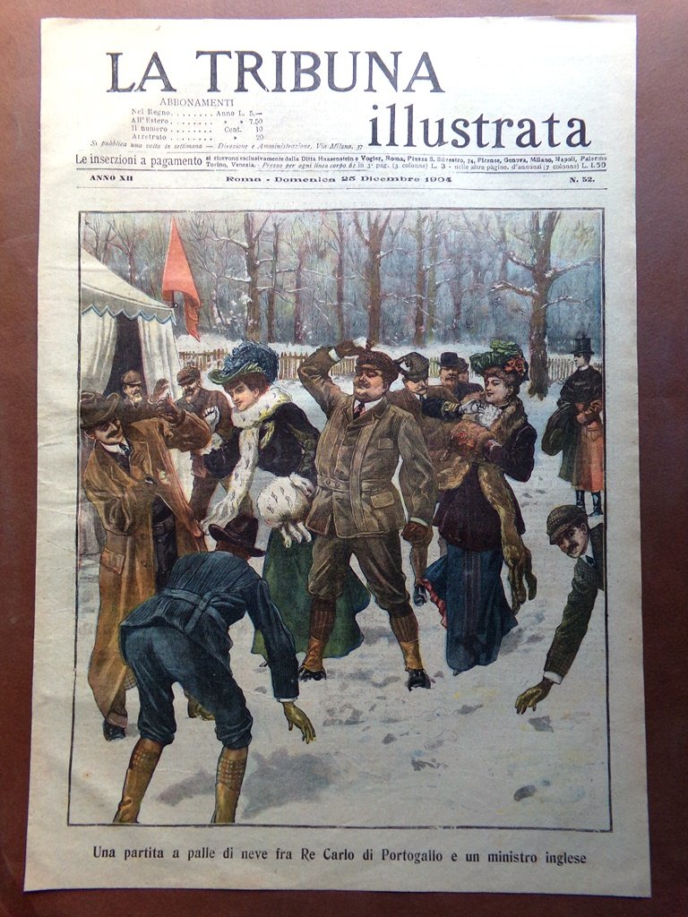 Copertina Tribuna Illustrata nr. 52 del 1904 Re Carlo Portogallo Palle di Neve