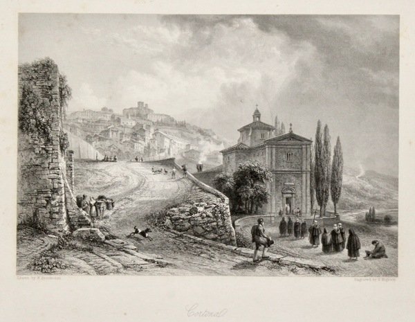 Incisione in acciaio di T. Higham, tratta da un soggetto di William Brockedon, 225x155. Buon esemplare.