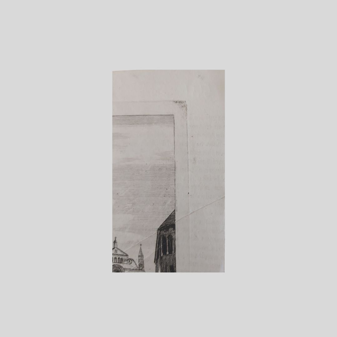 Incisione su rame di Vincenzo Segoni [1740 ca. – 1820 ca. ]. 1839 ca., mm 85×130 (alla battuta), mm 116×147 (tavola). Tracce d’uso, pieghe. Tratta da: L’Omnibus Pittoresco