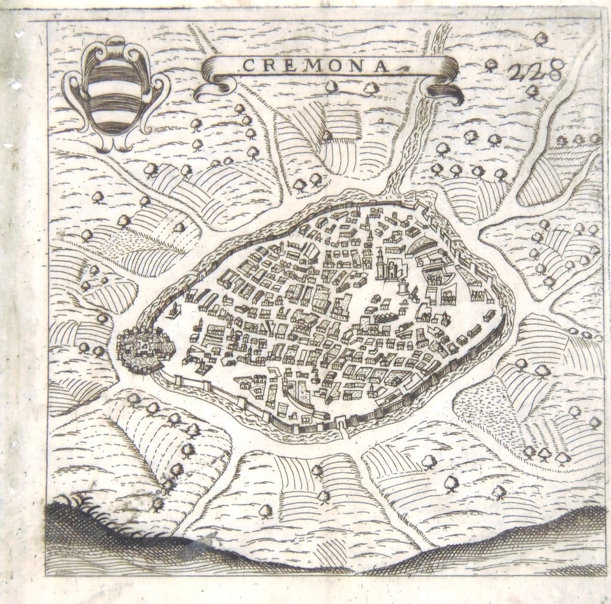 Incisione in rame, mm 120x130 raffigurante una pianta prospettica della città. La tavola proviene dall'edizione veneziana pubblicata da G. P. Brigonci. Buon esemplare con usuale traccia di piega editoriale.