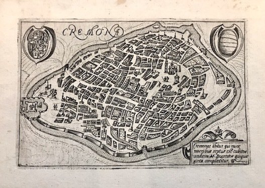 Incisione originale su rame (cm. 13,2x8,5 più ampi margini bianchi) impressa su carta vergellata. Tratta dall’opera ‘Nuova raccolta di tutte le piu illustri et famose citta di tutto il mondo’ pubblicata da Donato Rasicoti (o Rasciotti o Rascicotti). Esemplare in ottimo stato di conservazione. Molto rara. Francesco Valegio (1560 ca.-1650 ca.) operò quasi esclusivamente a Venezia come pittore, disegnatore, incisore, editore e mercante di stampe. La produzione artistica fu notevole: ritratti, soggetti storici e religiosi, illustrazioni per libri, carte geografiche, piante di città e incisioni di paesaggio. La sua opera calcografica più impegnativa è senz’altro la ‘Raccolta delle più illustri et famose città di tutto il mondo’ alla quale il Valegio contribuì con 112 incisioni mentre altre,fino al numero di 322, sono state eseguite da diversi incisori, tra cui molte da Martino Rota da Sebenico.