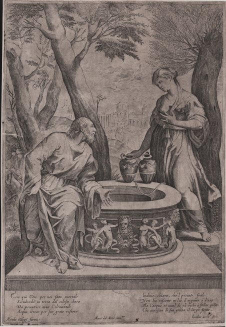 Bulino, 1565 circa, firmato in lastra in basso a destra. Da un soggetto di Marco del Moro. Bellissima prova, impressa su carta vergata coeva, con sottili margini, una piega di stampa nella parte sinistra centrale, per il resto in perfetto stato di conservazione. Sconosciuta al Bartsch ed al Passavant questa opera viene citata dal Nagler, che la descrive con cura. Il soggetto deriva dall’ambito veronese, precisamente da Marco del Moro ed è incisa nella maniera di Giacomo Caraglio. Madeline Archer la elenca tra le opere ingiustamente attribuite a Caraglio. Molto rara. Bibliografia Nagler, Die Monogrammisten , 1837: TIB 075. ' Engraving, 1565 circa, signed at lower right. After Marco del Moro. A fine impression, printed on contemporary paper, with thin margins, showing a little paper fold at upper left edge, generally in good conditions. Unknown by Bartsch and Passavant, this rare work is carefully described by Nagler. Madeline Archer put this work in the doubtful prints by Caraglio. Very rare. Literature_ Nagler, Die Monogrammisten , 1837: TIB 075. ' Cfr.