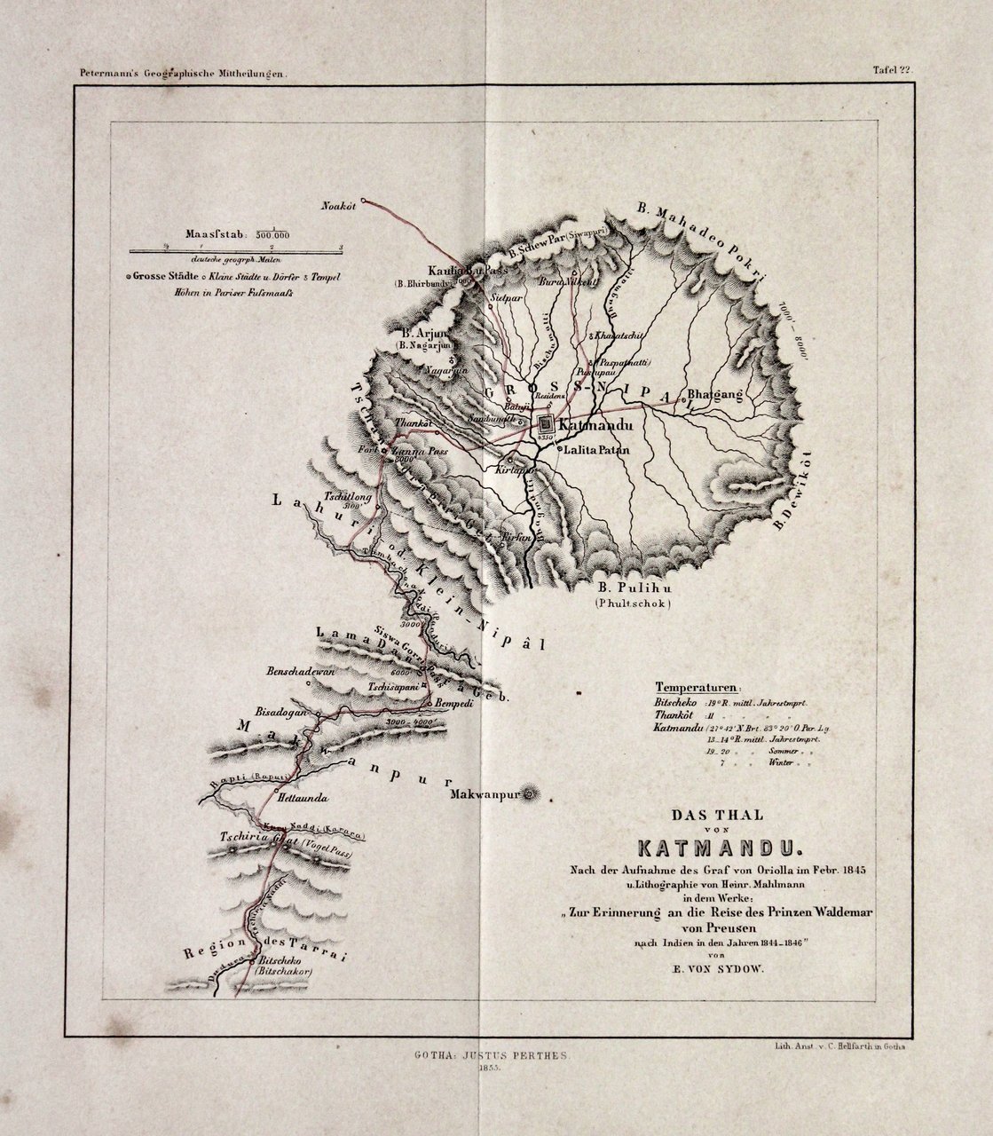 Das Thal von Katmandu nach der Aufnahme des Graf von Oriolla im Febr. 1845…zur Erinnerung an die Reise des Prinzen Waldemar von Preussen.<BR>