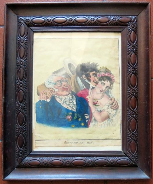 Litografia in colore d'epoca, 1830 circa, cm 22 x 27,5 (il foglio). Rifilati i margini superiore e i laterali, piacevole coloritura. Bella cornice d'epoca in legno lavorato.