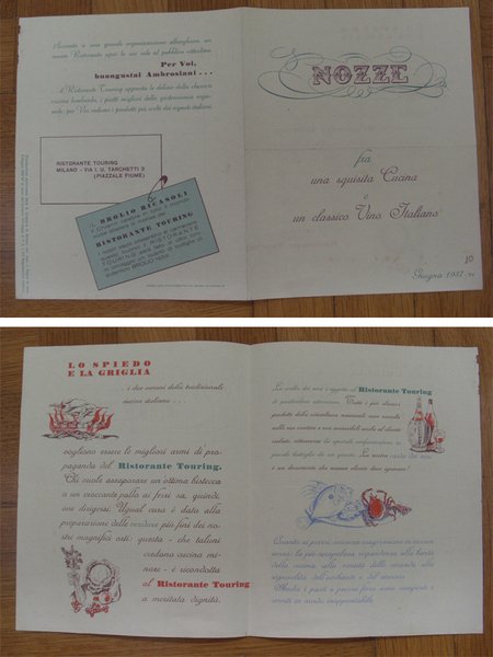 Depliant RISTORANTE TOURING - Milano (Piazzale Fiume) 1937 (vini / vino Brolio Bicasoli)