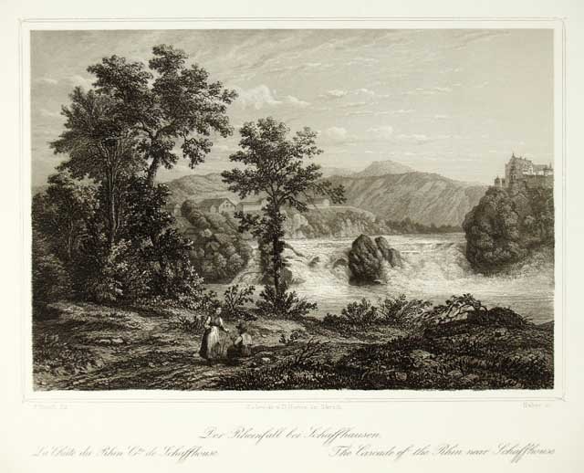 Incisione, antica ed originale, raffigurante la veduta panoramica della cascata e dei dintorni