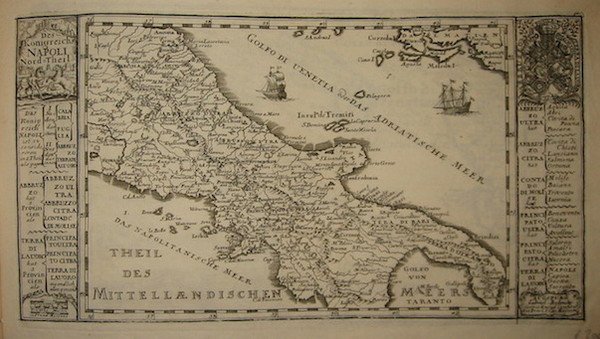 Carta geografica originale (cm. 28,7x15,7 più ampi margini bianchi) tratta da ‘Curioses Staats und Kriegs Theatrum.’. Esemplare in perfetto stato di conservazione.