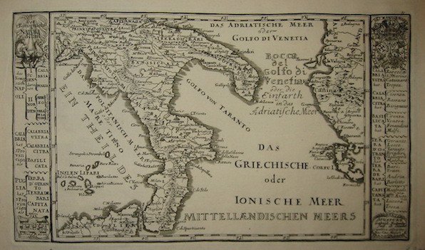 Carta geografica originale (cm. 28x16 più ampi margini bianchi) tratta da ‘Curioses Staats und Kriegs Theatrum.’. Esemplare in perfetto stato di conservazione.