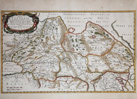 Tratta dall'edizione del Cartes Gènerales de toutes les parties du Monde curata da Pierre Mariette.Sanson era il più famoso cartografo francese della storia moderna, cosmografo al servizio di Luigi XIV, re di Francia; dotò le sue mappe delle più recenti informazioni geografiche e delle incisioni più belle e acute del periodo. Il "Cartes Generales de Toutes les Parties du Monde" rappresenta il più importante prodotto della cartografia commerciale francese del diciassettesimo secolo.Le mappe furono compilate a partire dal 1630 e l'atlante edito per la prima volta nel 1654, stampato da Pierre Mariette.Bell'esemplare, con coloritura coeva dei contorni, in buono stato di conservazione. Map taken from "Cartes Gènerales de toutes les parties du Monde" by Sanson.The maps were compiled by Nicolas Sanson who published his atlas in 1654, with 100 maps, and printed by Pierre Mariette; they were issued progressively from 1630.Sanson was the most noted French cartographer in modern history. Mapmaker to Louis XIV, King of France, Sanson endowed his maps with the most recent geographical information as well as the finest and sharpest engraving of the period. His "Cartes Generales de Toutes les Parties du Monde" was the most important single product of French commercial cartography of the seventeenth century.Copperplate in good condition. Cfr.