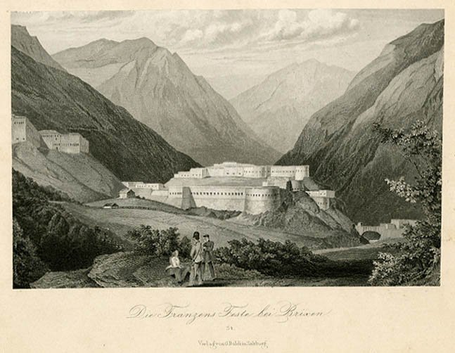 Incisione su acciaio di dimensioni 102x156 mm. Condizioni : USATO - Stato : Buono, ordinari segni d'uso e del tempo. Gora d'acqua nell'angolo superiore dx. Altre note : Veduta di Fortezza, a nord di Bressanone. Il forte da cui deriva il nome del luogo è un edificio militare grandioso voluto dall'imperatore Francesco I nel 1832. Situato in un punto in cui la valle dell'Isarco si chiude e ricoperto di lastre di granito, fu costruito da soldati austriaci provenienti da vari reggimenti. E militari in ozio sono rappresentati anche nel primo piano. L'autore della veduta è Friedrich Würthle (1820-1902), allievo di Karl Frommel e attivo a Salisburgo a partire dal 1860.