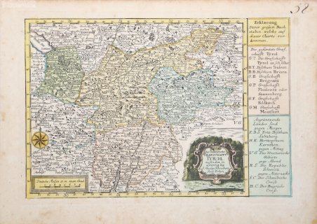Tratta dall’unica opera dello Schreibern "Atlas selectus von allen Konigreichen und Landen der Welt" pubblicata a Lipsia nel 1740. Incisione in rame, coloritura coeva a mano, in ottimo stato di conservazione. Map Taken form "Atlas selectus von allen Konigreichen und Landen der Welt". This handsome little atlas includes 41 (of 42) decorative maps including a double hemisphere world, the continents, European countries, Germany with a table of distances, regional maps of Germany, the Russian Empire, the Black Sea and the Holy Land. Lacking the map of Schwabischer. The map of the Americas features the island of California. The maps include a text panel describing the region and decorative cartouches.Phillips (Atlases) #610. Cfr.