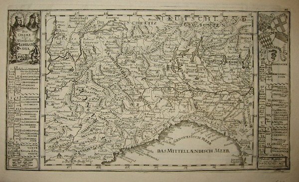 Carta geografica originale (cm. 27,7x16 più ampi margini bianchi) tratta da ‘Curioses Staats und Kriegs Theatrum.’. Esemplare in perfetto stato di conservazione.