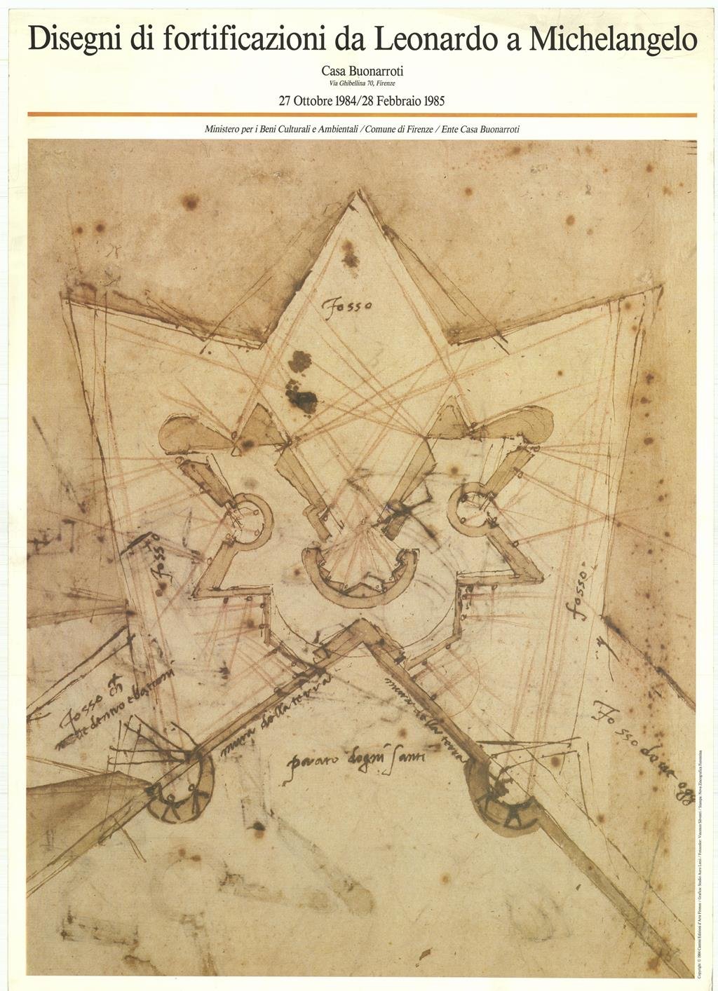 Poster originale. Casa Buonarroti 27 ottobre 1984 - 28 febbraio 1985. Ministero per i Beni Culturali e Ambientali. Cantini edizioni d'Arte Firenze. Buone condizioni