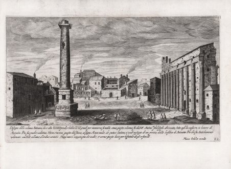 Veduta tratta dalla serie "Vestigi delle Antichità di Roma Tivoli Pozzuolo et altri luoghi", che il Sadeler incide, riprendendole dalla serie del francese Stefano Du Pérac, con la tecnica del bulino e in formato ridotto.L'opera consta di 50 tavole pubblicate da Marco Sadeler nel 1606 a Praga, attivissimo centro culturale, con lo stesso titolo "Vestigi delle Antichità di Roma" e le medesime descrizioni del Du Pérac in lingua italiana, senza citare l'inventore.Incisore di corte presso Rodolfo II, il Sadeler aveva compiuto viaggi in Germania e in Italia, soggiornando a Roma nel 1593.Nella sua opera compaiono però anche vedute di ". Tivoli, Pozzuolo et altri luochi" che mancano in quella del Du Pérac (sono tredici le tavole nuove) nelle quali viene accentuato l'aspetto naturalistico.Bulino, impresso su carta vergata coeva, con margini, perfetto stato di conservazione. View taken from "Vestigi delle Antichità di Roma Tivoli Pozzuolo et altri luoghi", after Etienne Duperac.Lettered in lower margin, with publisher's address and with Italian key to letters from within composition: "Marco Sadeler excudit.".Engraving, 1606, second state with publisher's address.The work consists of 50 plates first published by Marco Sadeler in 1606 in Prague with the same title and the same descriptions of Du Pérac in Italian.After taht the plates are re issued in Rome by Domenico De'Rossi. Engraver at the court of Rudolf II, Sadeler had made trips to Germany and Italy, staying in Rome in 1593. In his work appear but also views of Tivoli and Pozzuoli lmissing in that of Du Pérac (are thirteen new plates) in which is emphasized naturalistic.A fine impression, printed on contemporary laid paper, with margins, good condition. Cfr. Hollstein, F W H, Dutch and Flemish etchings, engravings and woodcuts c.1450-1700, Amsterdam, 1949.