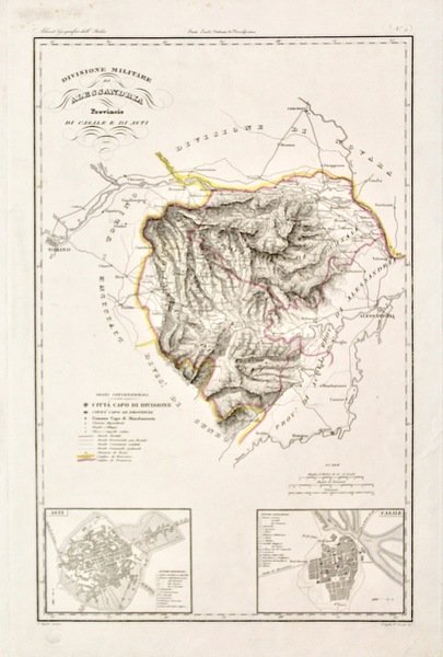 Incisione in rame incisa da Angeli e Stanghi, 522x335. Piantine di Asti e Casale in riquadro. Buon esemplare marginoso con lievissime fioriture marginali. <BR><BR>