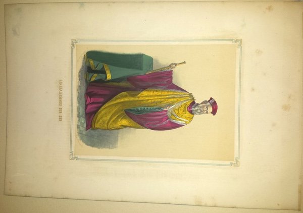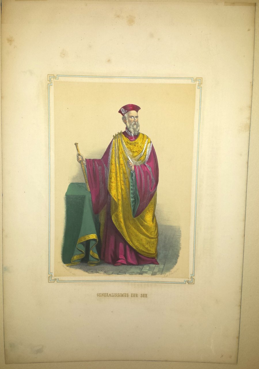 Litografia su foglio (33,5 x 50) cm. Bella colorazione probabilmente coeva. Pieni margini. In basso alla stampa, in corsivo: a sinistra "Rebellato dis.", a destra: "Lit. Brizeghel". Fa parte di: Das Malerische, Monumentale, Historische und Artistische Venedig : eine Darstellung seiner haupt-ansichten und alten gebrauche / in 60 Steindruk-tafeln, Gezeichenet von M. Moro und J. Rebellato, mit Beschreibendem Text von Franz Zanotto ; aus dem Italienichen von Adalbert MullerVenezia, Giovanni Brizeghel editore, Tip. Lit. Calc. e Libraio, Procuratie Vecchie N.° 137, 1856". Poche fioriture. Ottimo esemplare