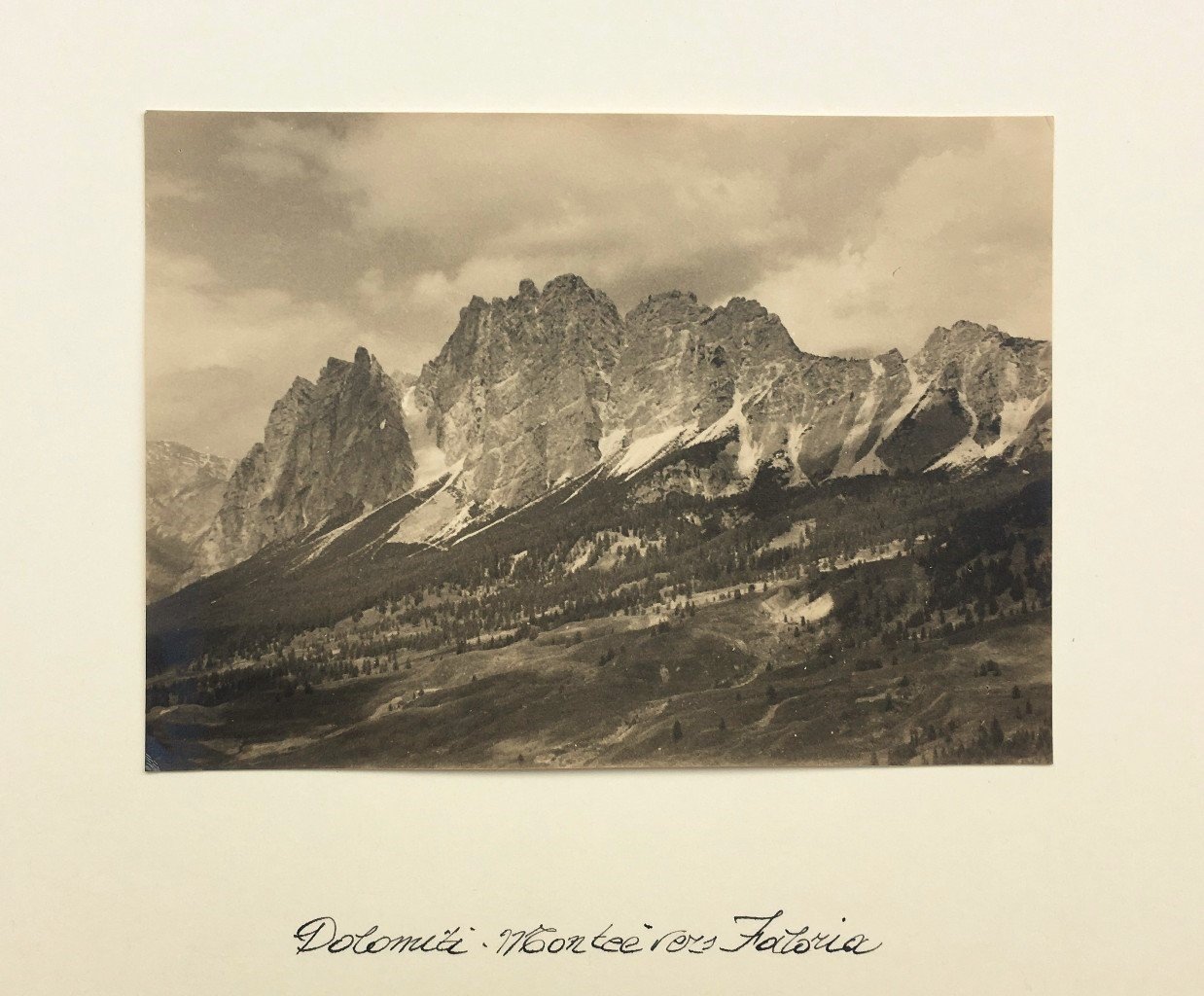 Fotografia originale con veduta dei dintorni di Cortina d'Ampezzo vista dalla funivia del Faloria. Applicata su cartoncino