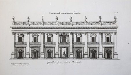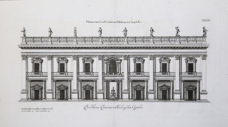 Opera tratta dalla celebre ' Academia Todesca della Architectura, Scultura & Pittura: oder Teutsche Academie der Edlen Bau, Bild-und Mahlerey-Künste, raccolta monumentale, riccamente illustrata da centinaia di incisioni raffiguranti antichità, architettura e mitologia classica, edita a Norimberga e Francoforte tra il 1675 ed il 1680. ' Questo lavoro di Sandrart deriva dalla serie Palazzi di Roma di Pietro Ferrerio. Questa serie di incisioni è divisa in due libri che mostrano le piante e l'architettura di vari edifici di Roma. I due libri furono pubblicati a Roma da Gian Giacomo de Rossi, nel 1655 circa. Il primo volume, intitolato Palazzi di Roma de' più celebri architetti designati da Pietro Ferrerio pittore et architetto, contiene 44 acqueforti, tutte tranne una che identifica Pietro Ferrerio come disegnatore. Il secondo libro, Nuovi disegni dell'architettura e piante de'palazzi de Roma de'più celebri architetti, disegnati et intagliati da Gio. Battista Falda, contiene 61 incisioni di Giovanni Battista Falda. Per le sue incisioni, il Sandrart si avvalse dei suoi collaboratori Karl Gustav von Amling (1650-1703); Philip Kilian (1628-1693); Richard Collin (1627-97); Georg Andreas Wolfgang (1631-1716); Johann Georg Waldreich (d.1680); Melchior Küsel (1626-1683); Franck, Johann (fl.1659-1690); George Christoph Eimmart (1638-1705); Susanna Maria von Sandrart (1658-1716); Bartholomäus Kilian (1630-1696). L'opera è piena di illustrazioni di edifici romani antichi e moderni, scultura, teoria della pittura, biografie di artisti, tra cui artisti tedeschi e contemporanei (cioè del XVII secolo), e antichità. Joachim von Sandrart fu un pittore di una certa importanza, ma è per la sua Teutsche Academie che è principalmente ricordato. Il suo compendioso trattato include sezioni sulla scultura antica e l'architettura, la prospettiva, la teoria della pittura, biografie di artisti, una traduzione delle Metamorfosi di Ovidio e così via. La seconda parte del Libro I pretende di dare una storia dell'arte dalle sue prime origini, e si apre con un'incisione di due scene di racconti leggendari della scoperta del disegno. L'opera è dedicata alla nazione tedesca di fama mondiale e ai campioni e amanti dell'arte ('Der Welt-berühmten Teutschen Nation . Kunst-Helden und Kunstliebenden'). Acquaforte, con margini, ottimo stato di conservazione. Bibliografia National Gallery (Washington), ' Mark J. Millard, III (1998), no. 111; F.W. H. Hollstein, ' German engravings . ca. 1400-1700 ' (1954-), 38-41; Anna Schreurs, ' Unter Minerva schutz: bildung durch kunst in Joachim von Sandrarts 'Teutscher Academie' ' (2012). Plate taken fom the monumental ' Academia Todesca della Architectura, Scultura & Pittura: oder Teutsche Academie der Edlen Bau, Bild-und Mahlerey-Künste ' (Deutsche Academy of Architecture - Sculpture – Painting). ' Sandrart's work are inspired by the series ' Palazzi di Roma […] ' by Pietro Ferrerio. This series of etchings is divided into two books showing the plans and architecture of various buildings in Rome. The two books were published in Rome by Gian Giacomo de Rossi, in 1655 circa. ' The first volume, titled ' Palazzi di Roma de' più celebri architetti designati da Pietro Ferrerio pittore et architetto, contains 44 etching, all except one identifying Pietro Ferrerio as draftsman. The second book, ' Nuovi disegni dell'architettura e piante de'palazzi de Roma de'piu celebri architetti, disegnati et intagliati da Gio. ' Battista Falda, contains 61 etchings by Giovanni Battista Falda. The first edition, in German, was published by Joachim von Sandrart in Nuremberg, in three volumes respectively in 1675, 1679 and 1680. For the plates Sandrart used his students as and many others artist as Karl Gustav von Amling (1650-1703); Philip Kilian (1628-1693); Richard Collin (1627-97); Georg Andreas Wolfgang (1631-1716); Johann Georg Waldreich (d.1680); Melchior Küsel (1626-1683); Franck, Johann (fl.1659-1690); George Christoph Eimmart (1638-1705); Susanna Maria von Sandrart (1658-1716); Bartholomäus Kilian (1630-1696). The work is full of illustrations of ancient and modern Roman buildings, sculpture, the theory of painting, biographies of artists, including German and contemporary (ie seventeenth-century) artists, and antiquities. Joachim von Sandrart was a painter of some note but it is for his Teutsche Academie that he is chiefly remembered. His compendious treatise includes sections on ancient sculpture and architecture, perspective, the theory of painting, artists’ biographies, a translation of Ovid’s Metamorphoses and so on. The second part of Book I purports to give a history of art from its earliest origins, and opens with an engraving of two scenes of legendary accounts of the discovery of drawing. The frontispiece to Volume I is signed as drawn by J. de Sandrart and engraved by C.G. Amling; that of Volume II is signed as drawn by Sandrart and engraved by R. Collin. The portrait in Volume I is signed as painted by J.U. Mair and engraved by P. Kilian; that in Volume II is signed as engraved by R. Collin. Many plates are signed as drawn by Sandrart and engraved by R. Collin or other engravers (J. Franck, G.A. Wolfgang, J.G. Waldreich, I.I. Thourneyser, Melchior Küsell, G. C. Eimmart, B. Kilian, Jacob Sandrart, Joh. Meyer, Susanna von Sandrart, J.A. Boener, C. Meyer). Many plates are unsigned. The work is dedicated to the world-renowned German nation and to champions and lovers of art ('Der Welt-berühmten Teutschen Nation . Kunst-Helden und Kunstliebenden'). Etching with margins, very good condition. References National Gallery (Washington), ' Mark J. Millard, III (1998), no. 111; F.W. H. Hollstein, ' German engravings . ca. 1400-1700 ' (1954-), 38-41; Anna Schreurs, ' Unter Minerva schutz: bildung durch kunst in Joachim von Sandrarts 'Teutscher Academie' ' (2012). Cfr.