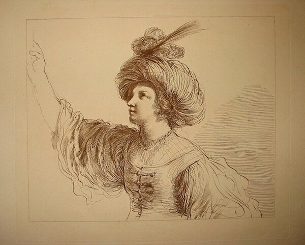 Incisione originale su rame all’acquaforte e bulino (cm. 31x26 più ampi margini bianchi) da un soggetto di Gio. Francesco Barbieri detto il Guercino. Carta vergellata. Ottimo esemplare.