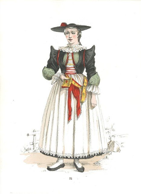 Costume caratteristico del luogo, disegnato, stampato e colorato a mano dal pittore Aldo Fornoni coadiuvato dalla pittrice Maria Angela Grassi