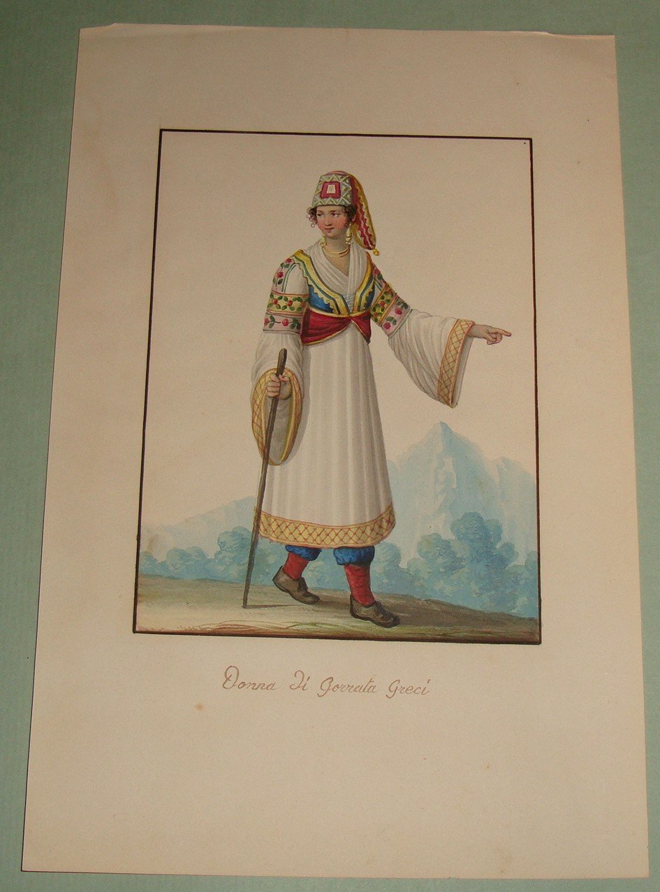 Anonimo. Donna di Gorrata Greci. 1830 ca. Cm.20x14. Acquarello.
