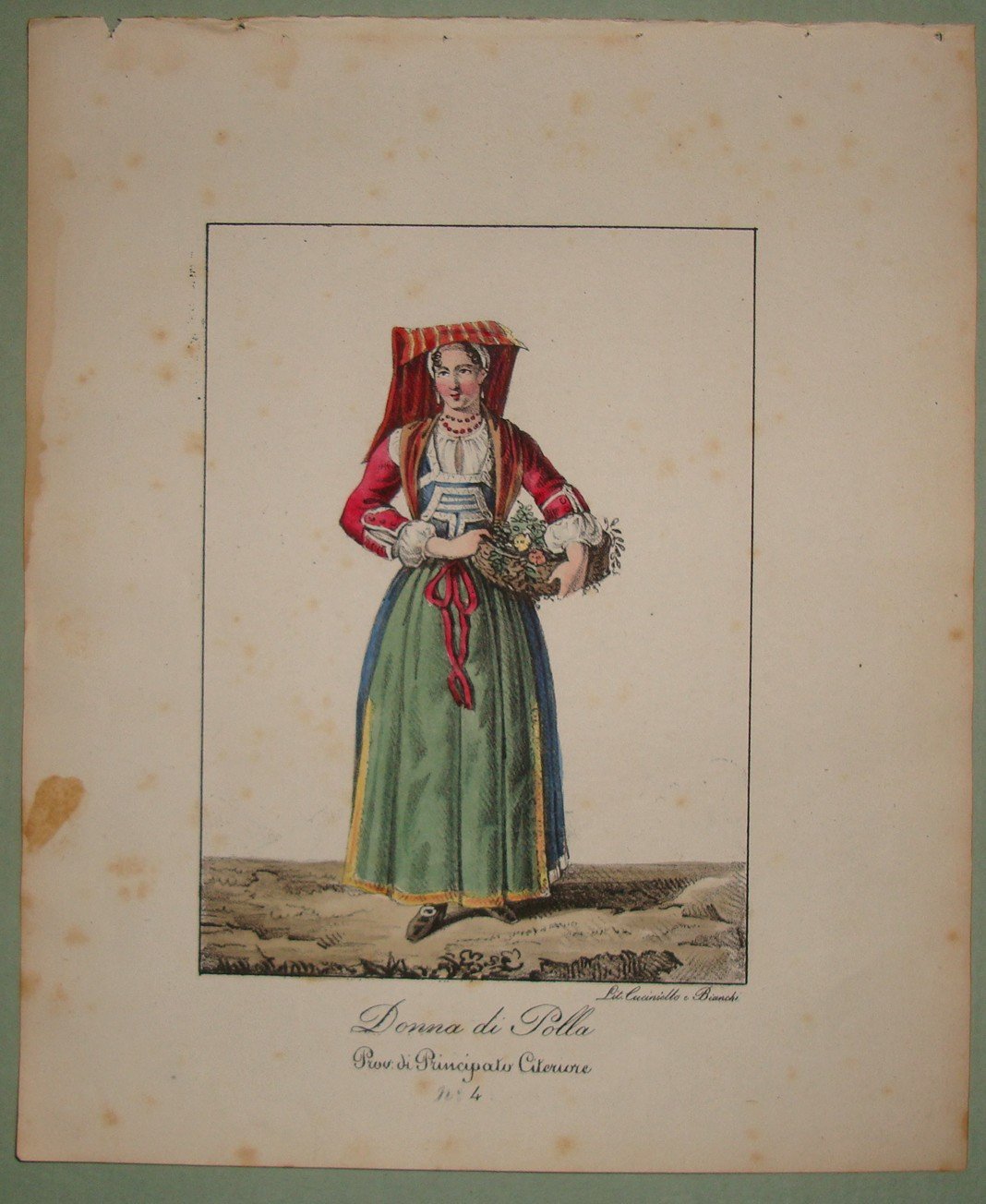 Cm.16x12 oltre margini con titolo. Litografia acquarellata edita da Cuciniello e Bianchi nel 1830 ca., coloritura coeva.